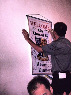 This years reunion we had 25 Macsians came back to Malacca from all over Malaysia . Mr Chong the current ACS teacher was also invited to conduct sales of tickets for the ACS Centenary Celebration which falls on the 5th March 2011. There were also 5 girls from MGS Malacca Class of 85 gatecrashed the party. We also had a sexy hostess Ming Ming entertaining the boys.The boys of 85 had secured 3 tables for the Centenary Celebration Dinner , 4 girls from MGS 85 was also invited - courtesy of Ivan Teoh. Mr Chong gave a lenghty speech to boost the ticket sales and kudos to Siow Chee Liang who immediately booked 3 tables in advance.